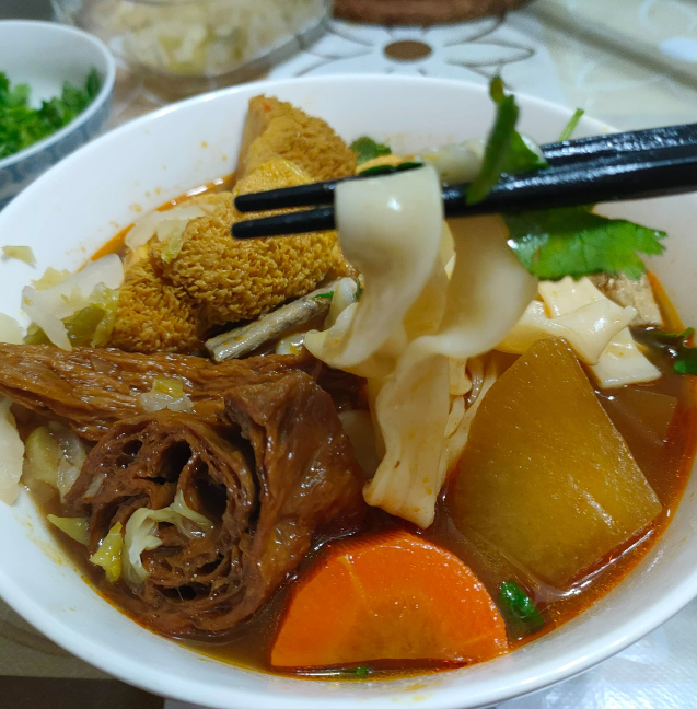 純蔬菜熬煮的湯頭搭上猴頭菇及彈牙的蝴蝶麵真是連葷食的朋友都愛上這一味囉😆😜😘